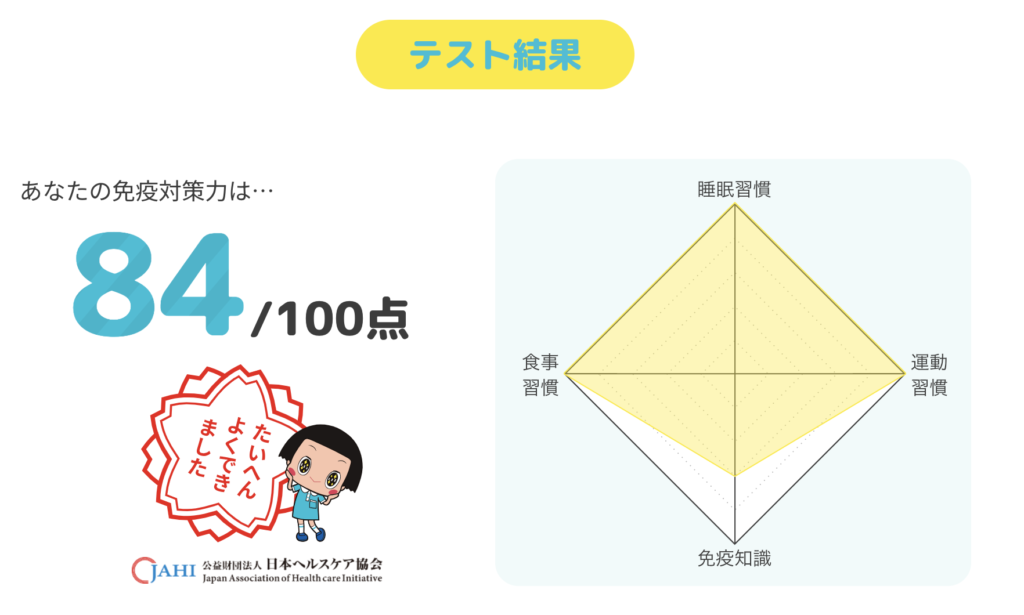 『全国統一免疫対策テスト』、僕も通勤途中にやってみました!(84点でした/15問中13問正解)