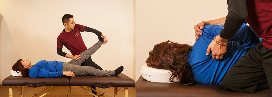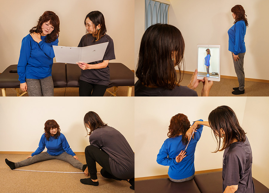 はい、大丈夫です! カラダが硬くても痛すぎない(イタ気持ちいい)ように、お客様のカラダの状態に合わせた施術を行うので安心してください。また、お客様に安心して施術を受けていただくために、施術前に入念なヒアリングと、姿勢や関節、筋肉の状態のビフォーアフターチェックを行っています。