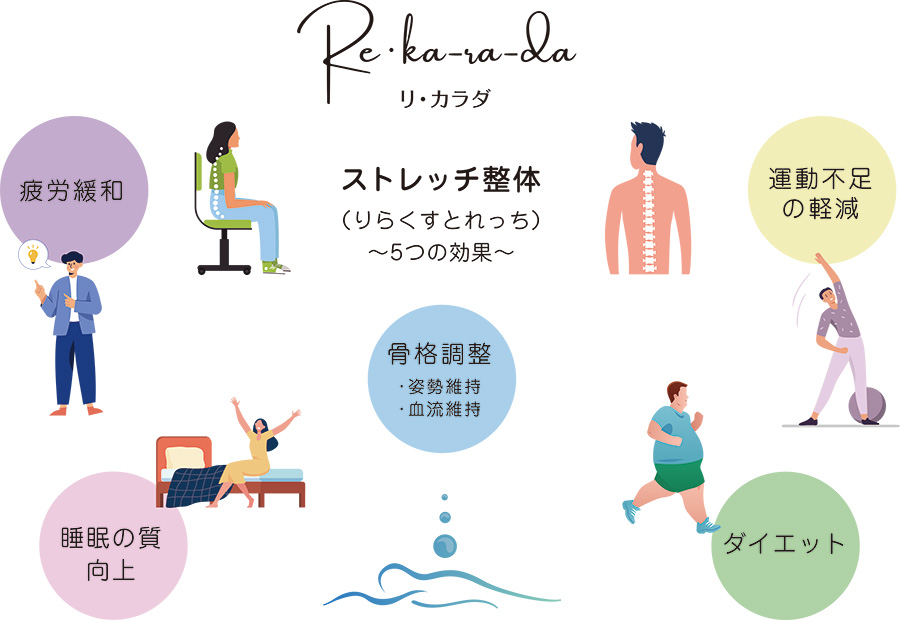ストレッチ整体『リ・カラダ』は、アナタの“ココロとカラダ”の健康を手助けする『カラダ・リカバリーサロン』です。